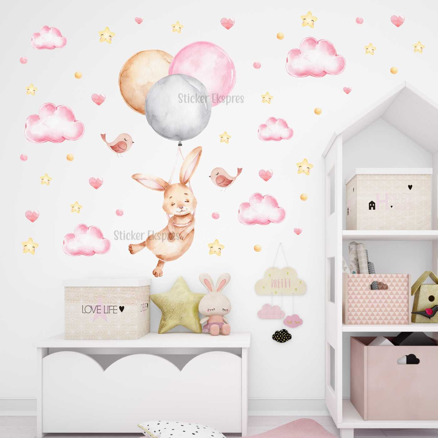 Balonlu Uçan Tavşan Çocuk Odası Sticker Seti