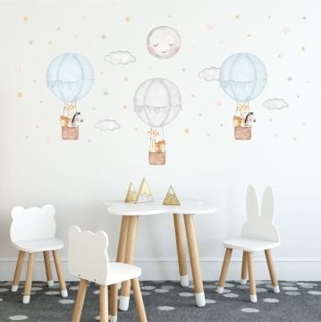 Sevimli hayvanlı balonlar modelimiz, renklerinin desenlerinin güzelliği ve suluboya görünümü ile çocukların ilgi alanlarına hitap ederken odalarını da renklendirmekten geri kalmıyor.